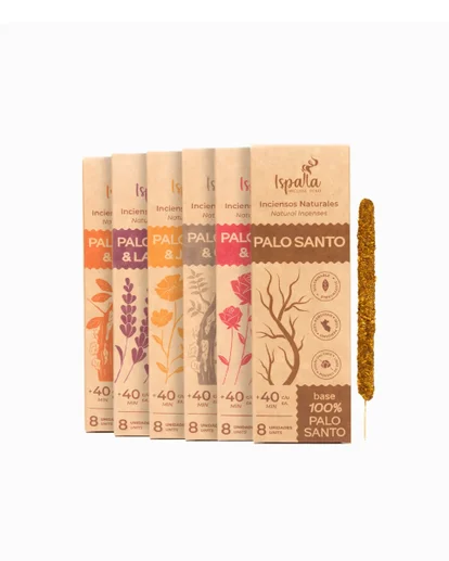 Palo Santo / Palo Santo & Copal / Palo Santo & Mirra / Palo Santo & Rosa / Palo Santo & Jasmín / Palo Santo & Lavanda / Palo Santo & Romero / Palo Santo & Ruda / Palo Santo & Eucalipto